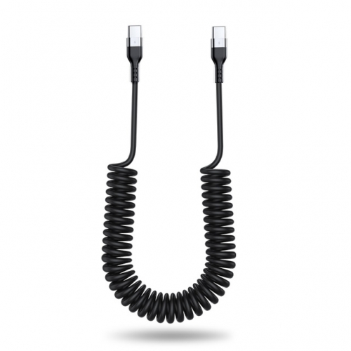 • Gekrulde zwarte USB-C naar USB-C kabel